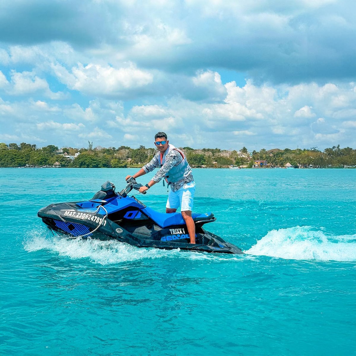 Choosing our Jet Ski Rental in Bacalar Lagoon means enjoying a truly unique experience in one of the most breathtaking natural settings in Mexico. The calm turquoise waters create the perfect environment for both speed and relaxation, letting you feel the thrill of adventure while surrounded by spectacular scenery. Whether you ride solo or share the moment, every second on the jet ski becomes a memory you’ll treasure long after your time in the Bacalar Lagoon.